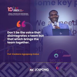 On the soft aspect, Prof. Agyapong- Kodua urged the leaders of Jospong Group of Companies and other corporate organizations to take a keen interest in motivation as a “demotivated group will lead to poor performance while a motivated group achieve more than the resources provided to them will reasonably achieve.” He also urged that “none should be the voice that disintegrates the team, whether in dealing with their junior or senior colleagues. Instead, “be the voice that rallies support and motivate all others.” Prof. Agyapong-Kodua concluded.