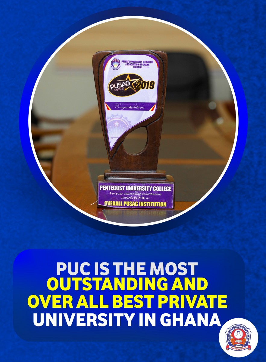 - PU was awarded the Most Outstanding and Over All Best Private University in Ghana at the 2019 PUSAG Congress