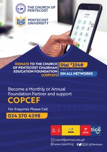The Church of Pentecost Chairman Education Foundation was established in the year 2019. The objective is to support deprived students get tertiary education at Pentecost University.