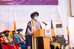 The Vice-Chancellor of the University Aps. Prof. Kwabena Agyapong-Kodua in his graduation address congratulated the students and expressed confidence that the skills acquired at the university will be fruitful to them and the society. He also urged them to join the Pentecost University Alumni Network and enrol in PU for their next educational levels.