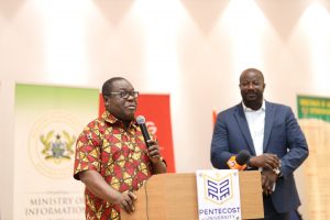 The Hon Minister of Information Mr. Kojo Oppong Nkrumah has praised Pentecost University for supporting the community. Mr. Oppong Nkrumah showered the praises when he addressed participants of this year’s Career Fair organized on the University campus in Sowutuom, Accra. He said “congratulations to Dr. Adomako Kissi who makes every effort to serve his people, and thanks to the Management of Pentecost University for supporting such good efforts.” He added that the University should continue to open its doors for such community-based initiatives so that “we can build the country together.”