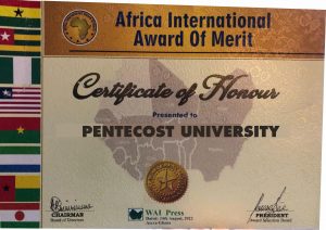 The International Award of Merit received on Wednesday 24th August 2022 is the latest of prestigious ones that Pentecost University has received in recent years. The University has previously received awards on outstanding performance in health and allied sciences, communication studies, IT, engineering and sports.