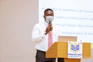 Recent research by faculty members from the Department of Nursing and Midwifery, PU, comprising Mr. Reginald Arthur-Mensah Jnr, Mr. Paa Kofi Tawiah Adu-Gyamfi and Dr. Abigail Agartha Kyei, a faculty member from the Department of Mathematics, Kwame Nkrumah University of Science and Technology (KNUST), Mr. Lincoln Tetteh-Ahinakwa and a recent graduate from the Department of Nursing and Midwifery, PU, Franklin Edem Tsey, currently working with the Department of Accident and orthopaedics, Korle Bu Teaching Hospital was presented. The research has been published in the current edition of the Pentvars Journal, Volume 13, Number 1, 2021, pgs 72-87. The research title is “Patients’ satisfaction with male nurses: Evidence from a Teaching Hospital in Ghana”. The abstract of the research is presented below.