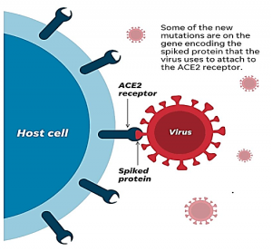 The new strain has several genetic mutations especially on its “spike proteins” on the viral cell surface which it uses to attach to the human host cells (see Figure 1 and 2). Thus, this makes the new strain attach to the human host cells more readily and efficiently making it easier for the virus to enter into the host cells to cause disease. It is estimated that these mutations can make the virus up to 70% more transmissible. However, there is no evidence that it is linked to a higher risk of hospital admissions or deaths. At least, 17 mutations in the spike proteins have been identified but mutation G614 is of urgent concern. (see Figure 2).